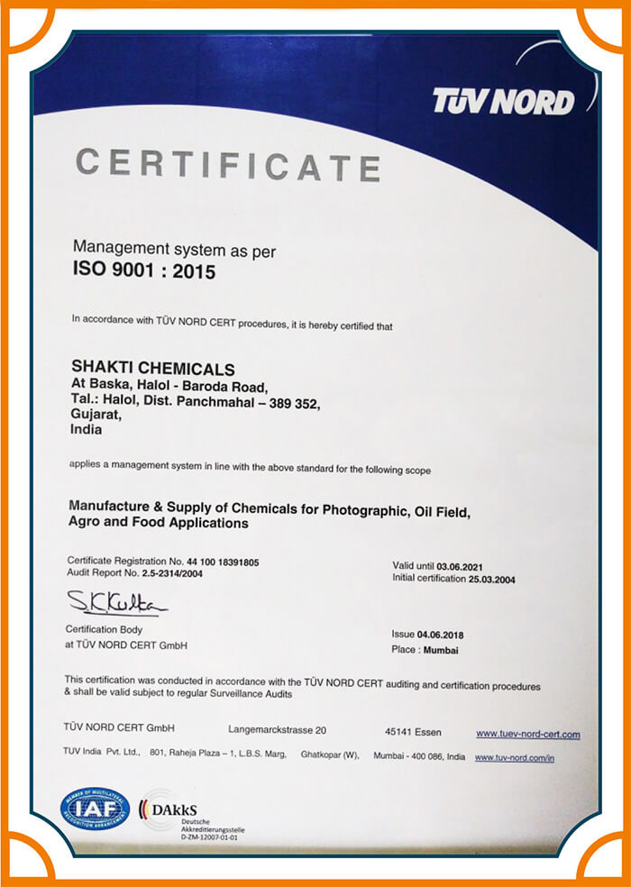 At SHAKTI CHEMICALS we keep quality as our top priority. In the manufacturing of oilfield and caramel color industry as well as Industrial chemicals keeping all quality standards and certifications holds very important place. It is important to keep a standard procedure to maintain records as well as required documentation to meet desired quality and regulatory requirements.